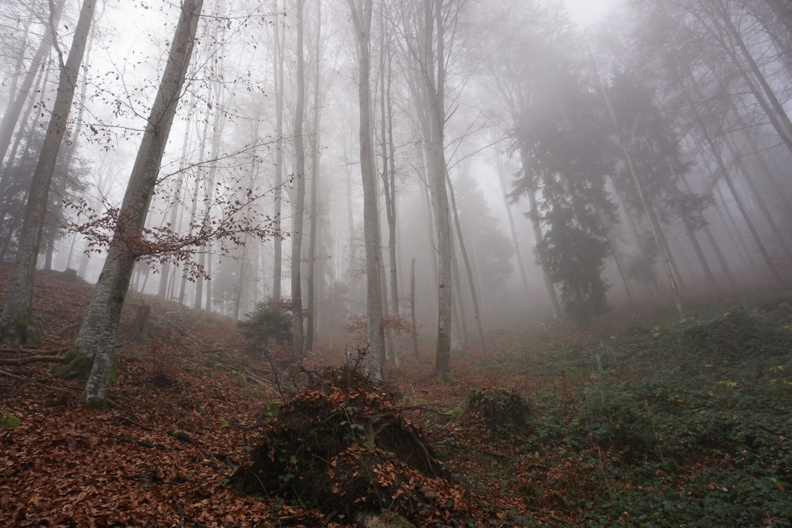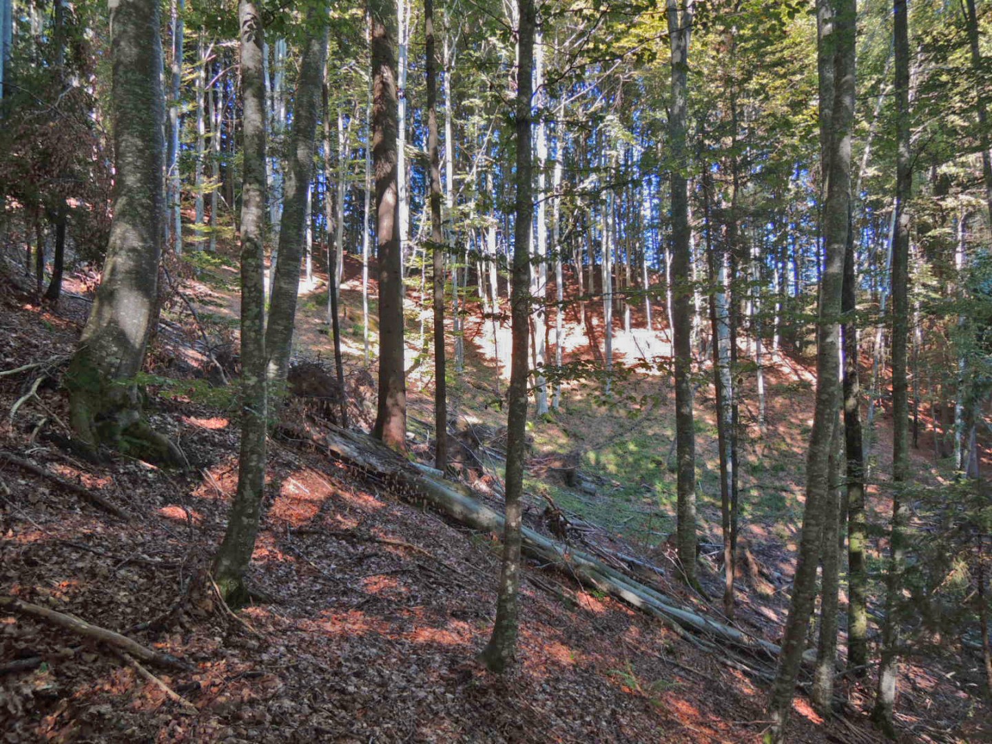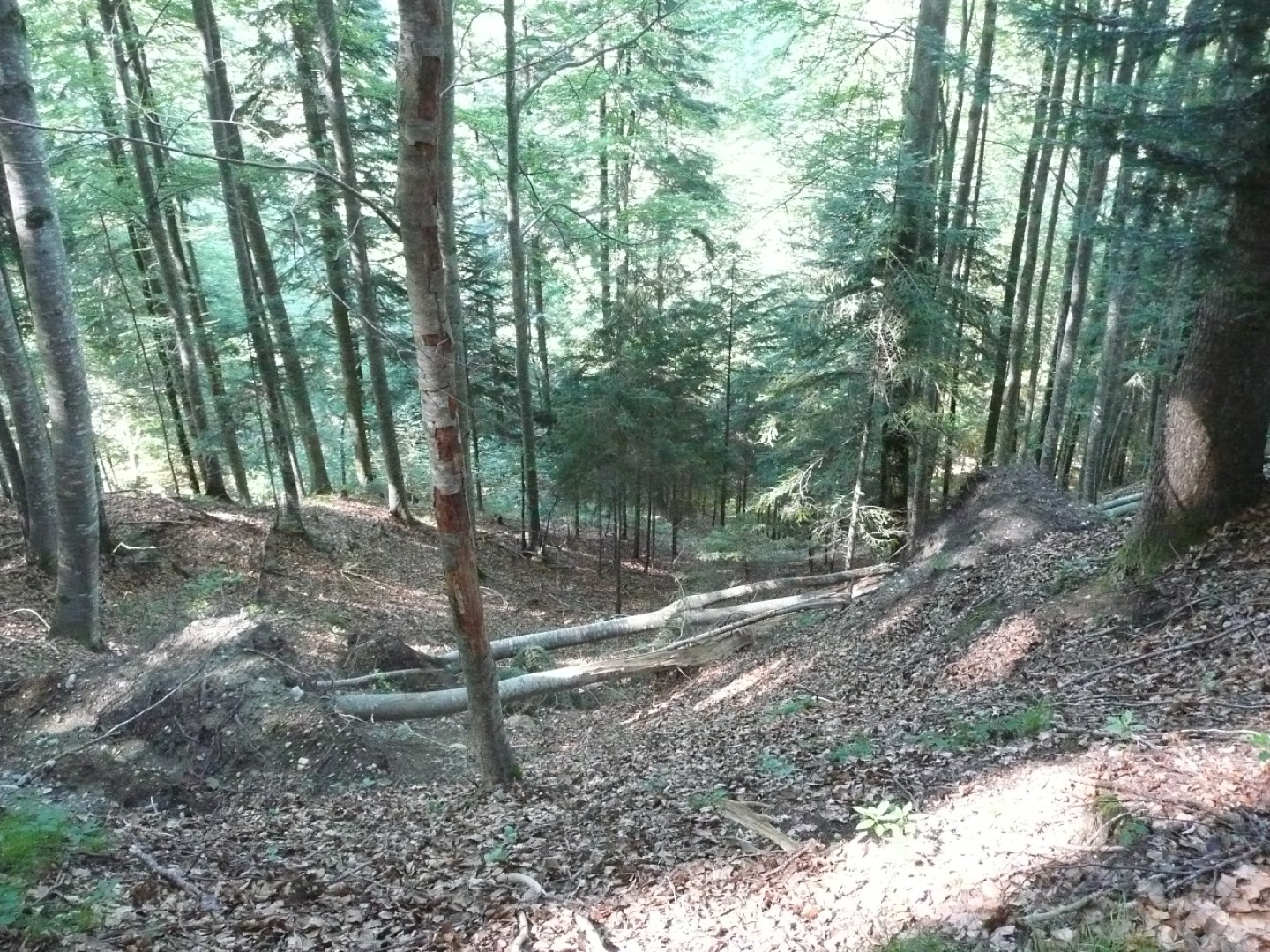 Im Hang Richtung E 3 (Exp. NO) sind 5 Bu (Total 2 m3) geworfen worden