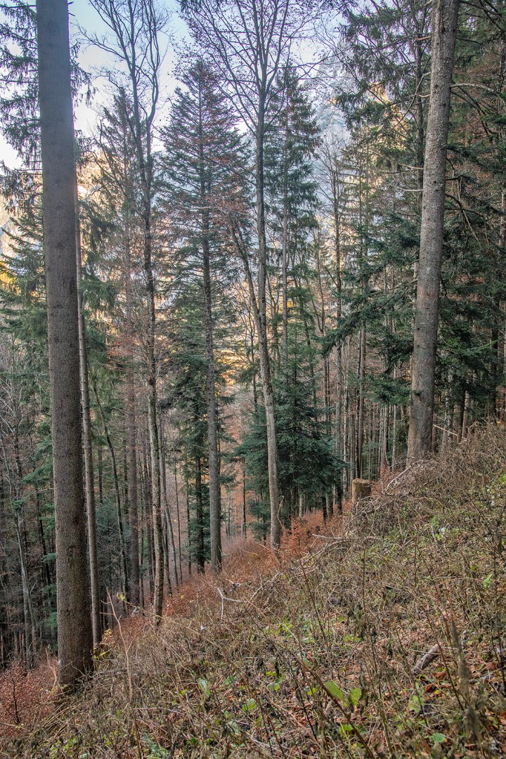 Die starke Dominanz der Buche ist die direkte Folge der Öffnungsgrösse. Das Aufwachsen der Tanne wird dadurch stark verzögert. Für Folgeeingriffe bedeutet dies, dass die Öffnungen kleiner sein müssen und evtl.mit Einzelbaumentnahmen kombiniert werden. Mit dem Seitenlicht aus den kleineren Öffnungen verjüngt sich die Tanne deutlich zahlreicher und bekommt einen Vorsprung zur Buche. Einzelne Beispiele aus kleinen Öffnungen von Zwangsnutzungen bestätigen dies.