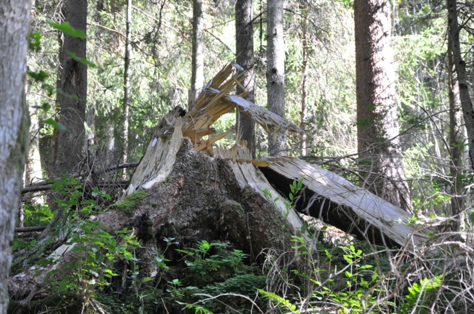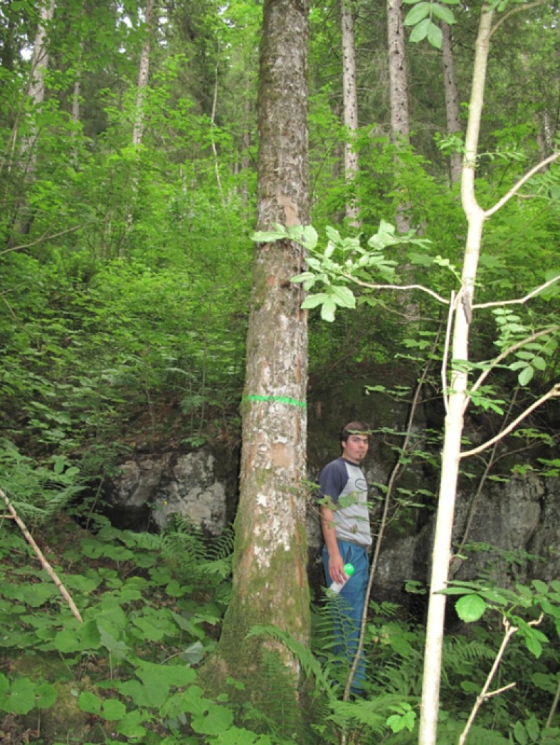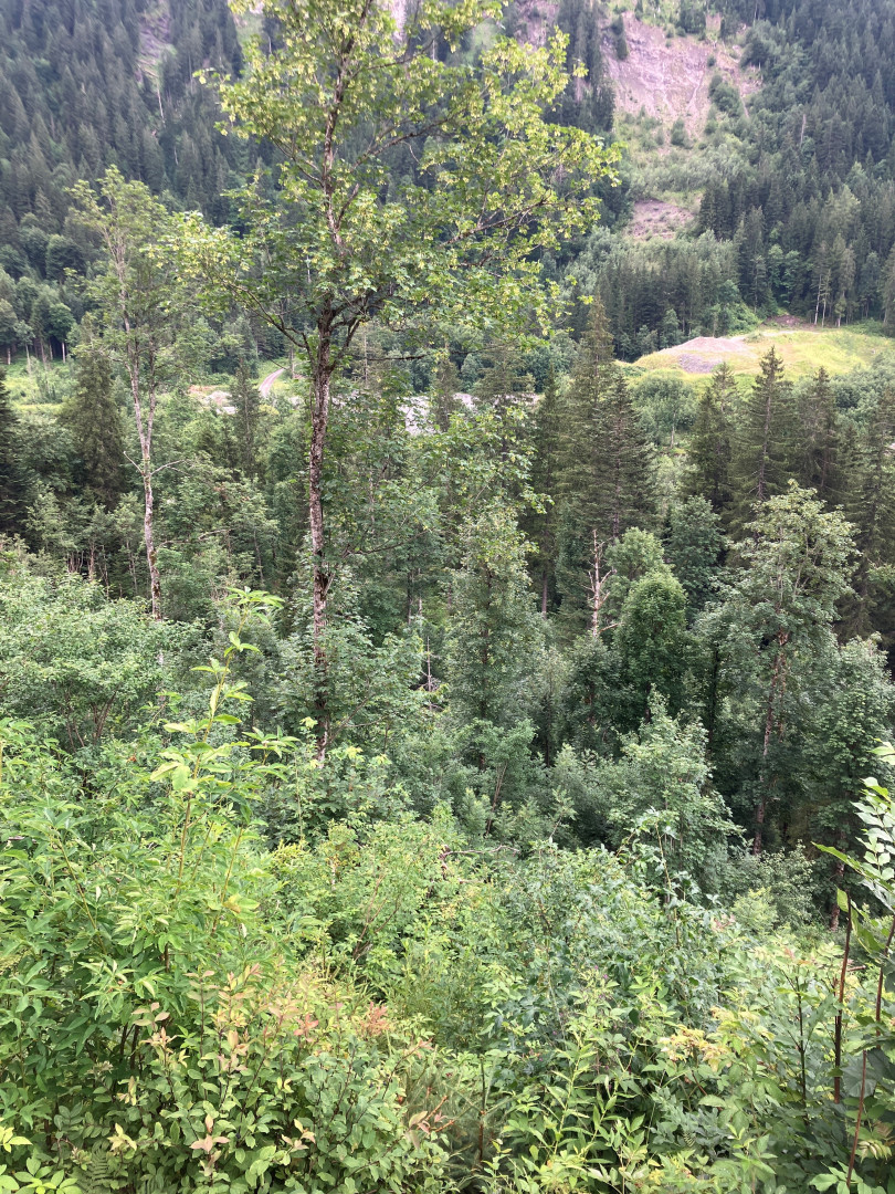 Le mélange est composé d'une majorité d'érable (60%), l'épicéa ne représente plus que 20% du peuplement, les frênes 3-5% et les mélèze 1%. Une bonne diversité d'autres feuillus est apparue (aulne blanc, merisier, sorbier des oiseleurs, merisier, saule)