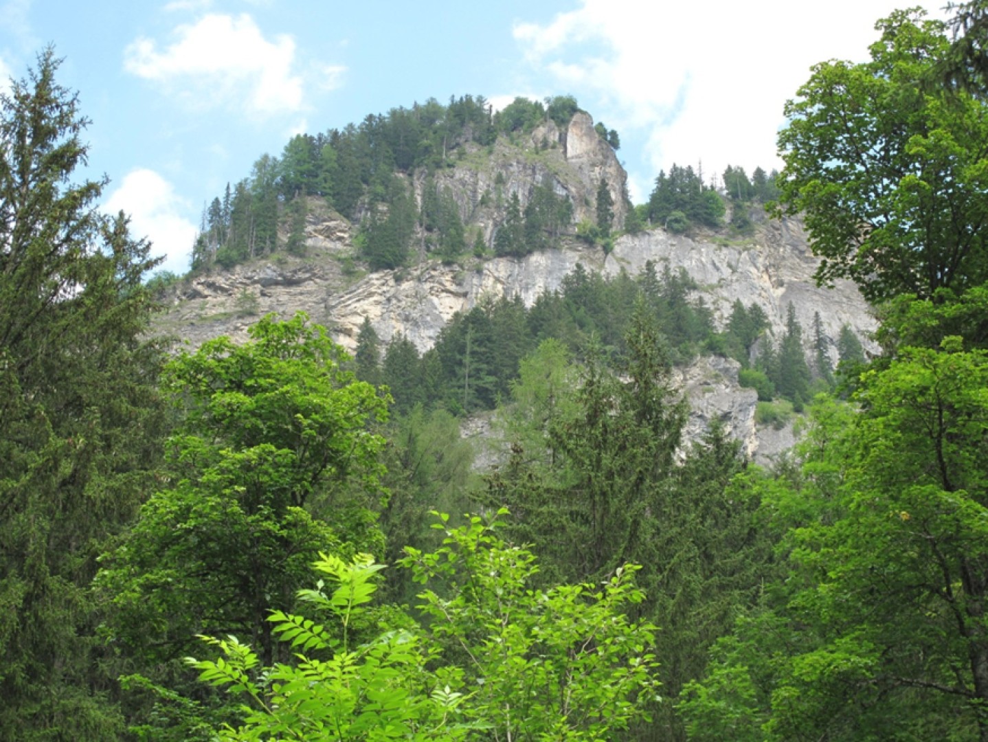 Forêt située en-dessous d'une barre rocheuse et protégeant une piste VITA. Présence de chutes de pierres et de blocs.