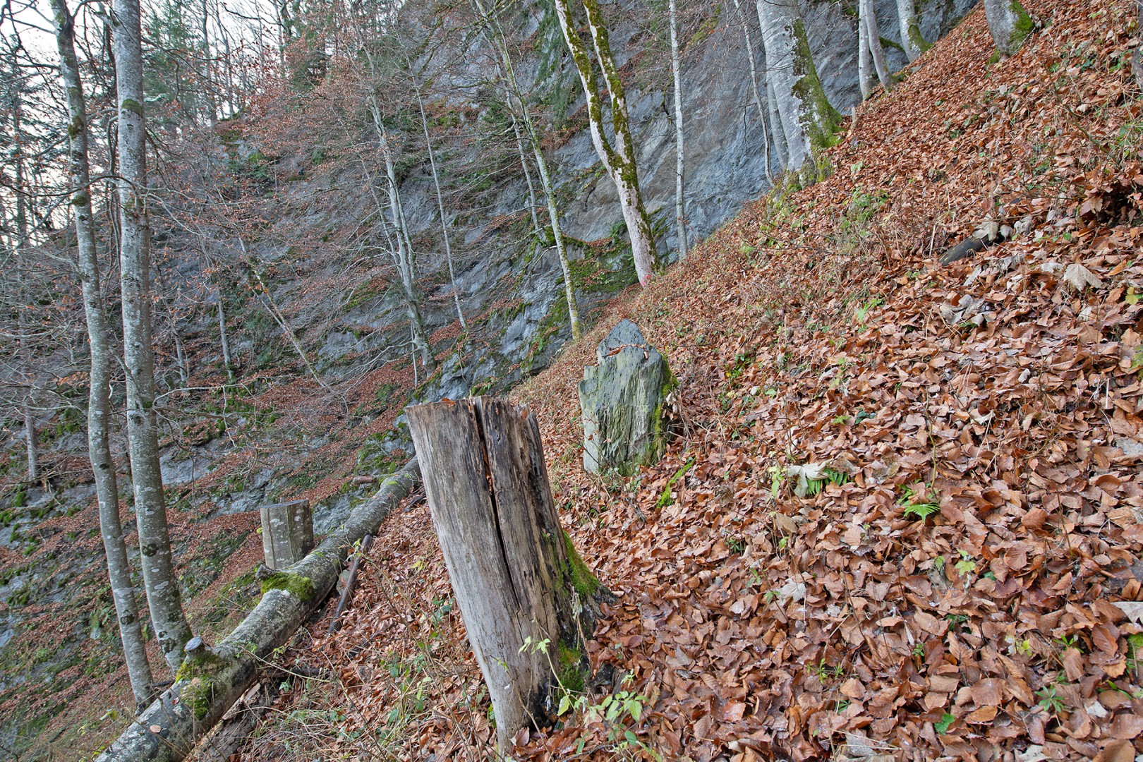 Nassschneeereignisse haben gezeigt, dass in diesem steilen Gebiet nur vorsichtige Eingriffe auszuführen sind. Bei Ereignissen könnten zu grosse Öffnungen entstehen.