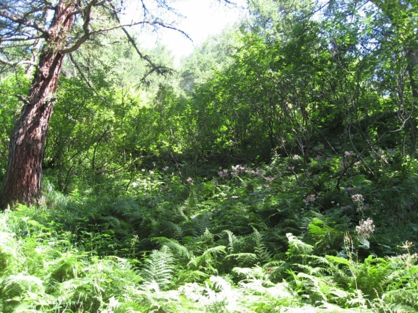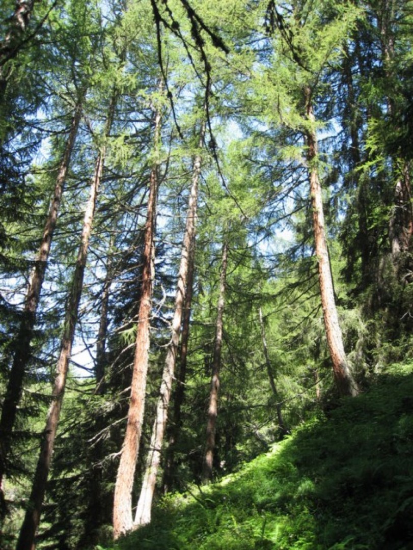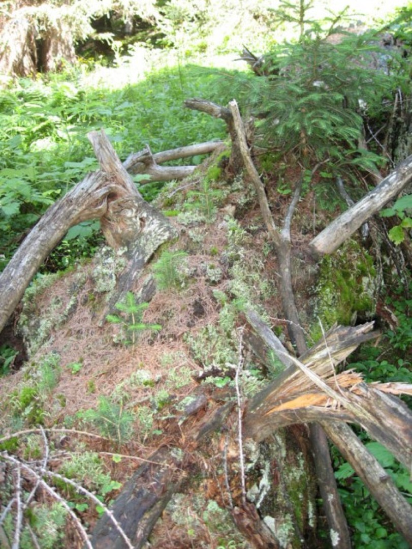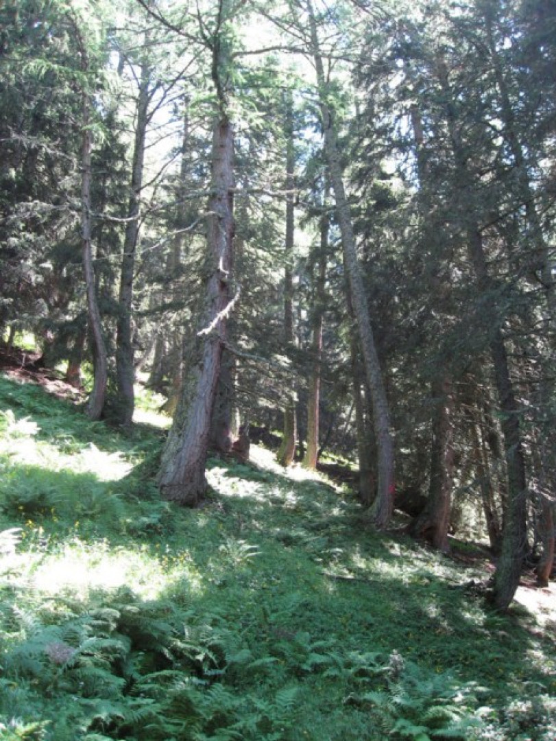 Verjüngung eines lärchenreichen hochmontanen Fi-Waldes im Lawinenanrissgebiet.