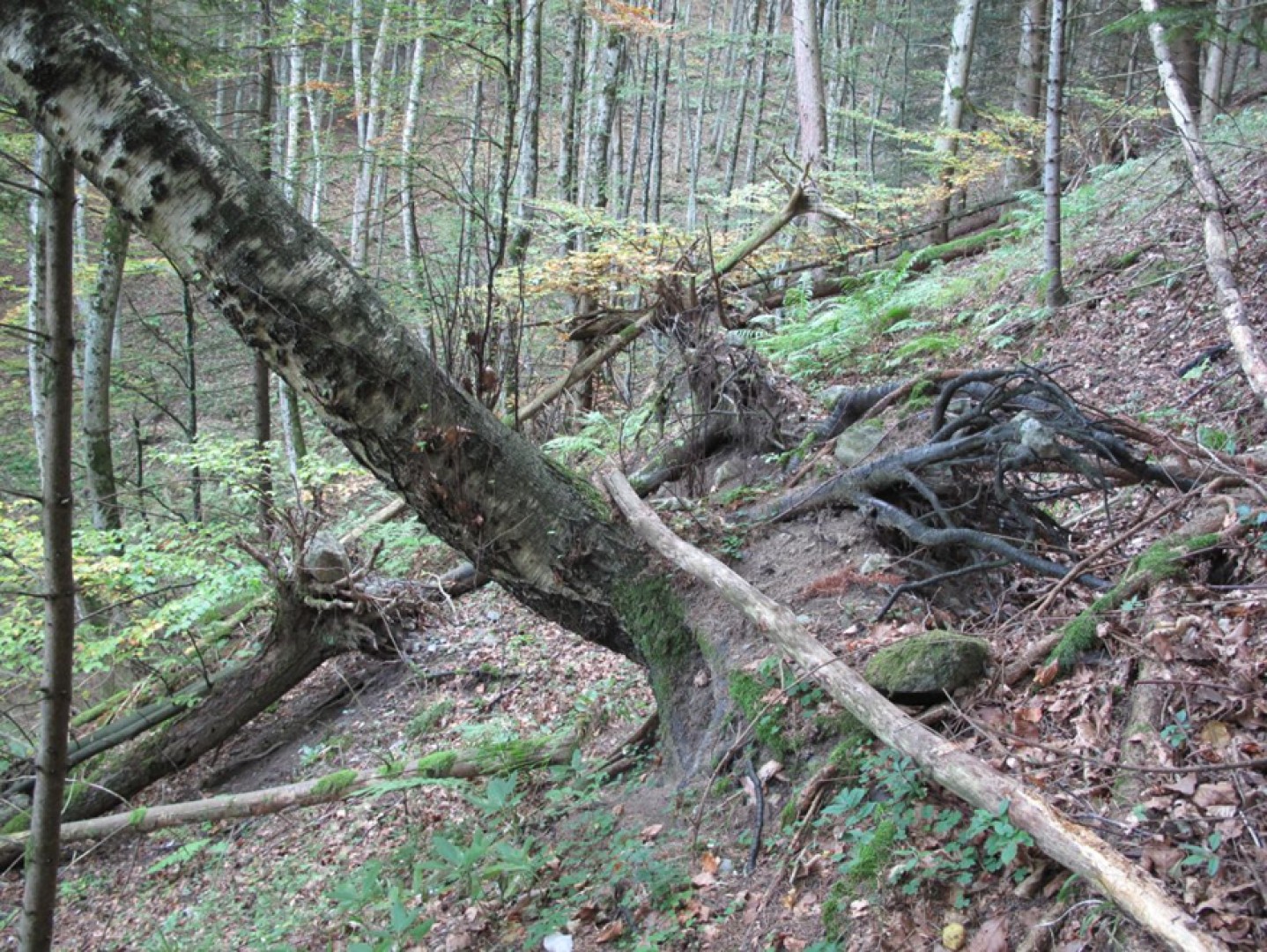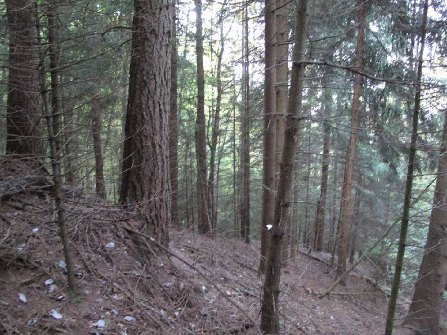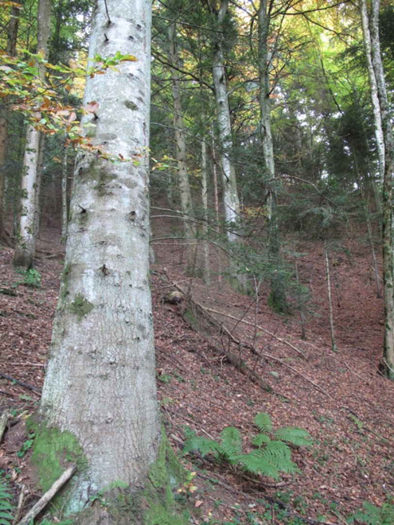 La dernière coupe a bien favorisé le feuillu, ce qui est positif sur la placette