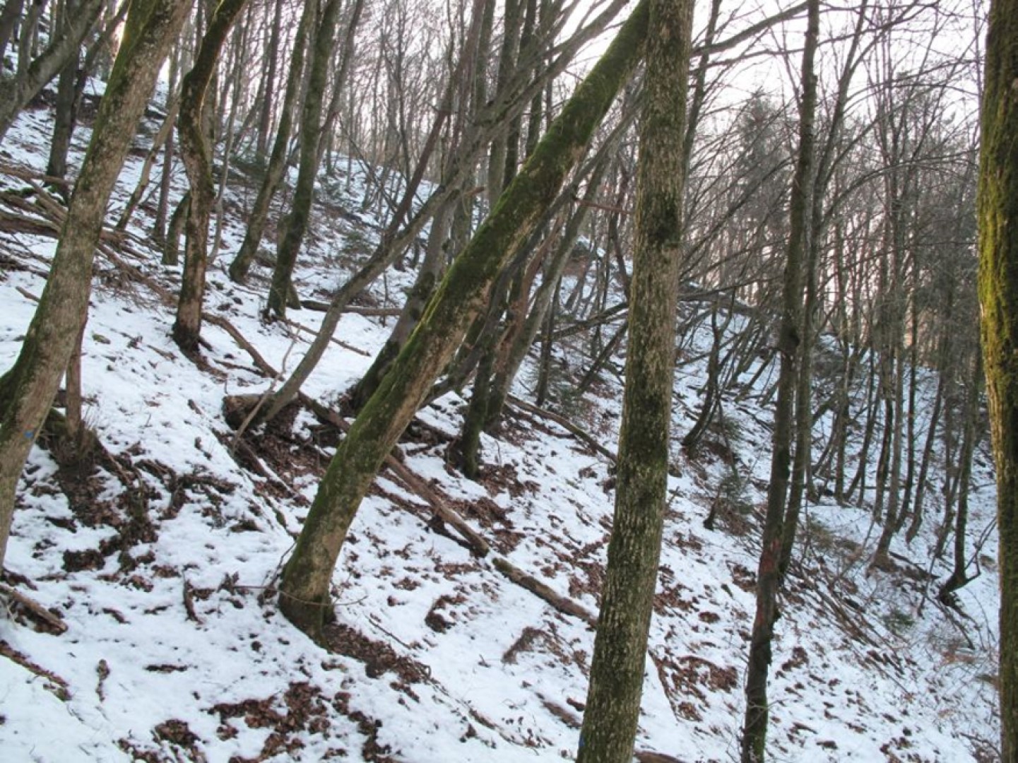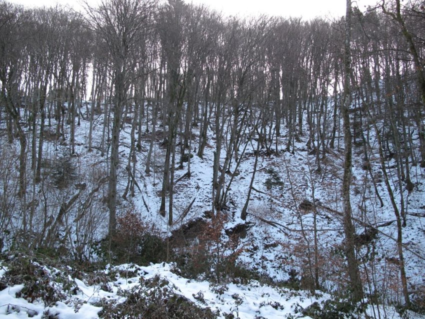 2010 : Installation de la placette à l'occasion d'un cours NaiS pour les forêts de protection dans les vallons boisés. L'ensemble de la forêt est fortement instable, sans rajeunissement. Dégager tous les arbres relativement stable et ouvrir le peuplement au rajeunissement (par trouée ou mise en lumière de tout le peuplement)