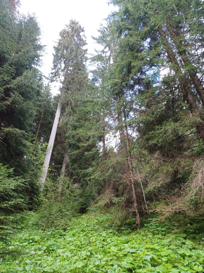 Fi-Verjüngung überall vorhanden, im oberen Bereich unter dem Schirm der Erlen bereits Mannshoch