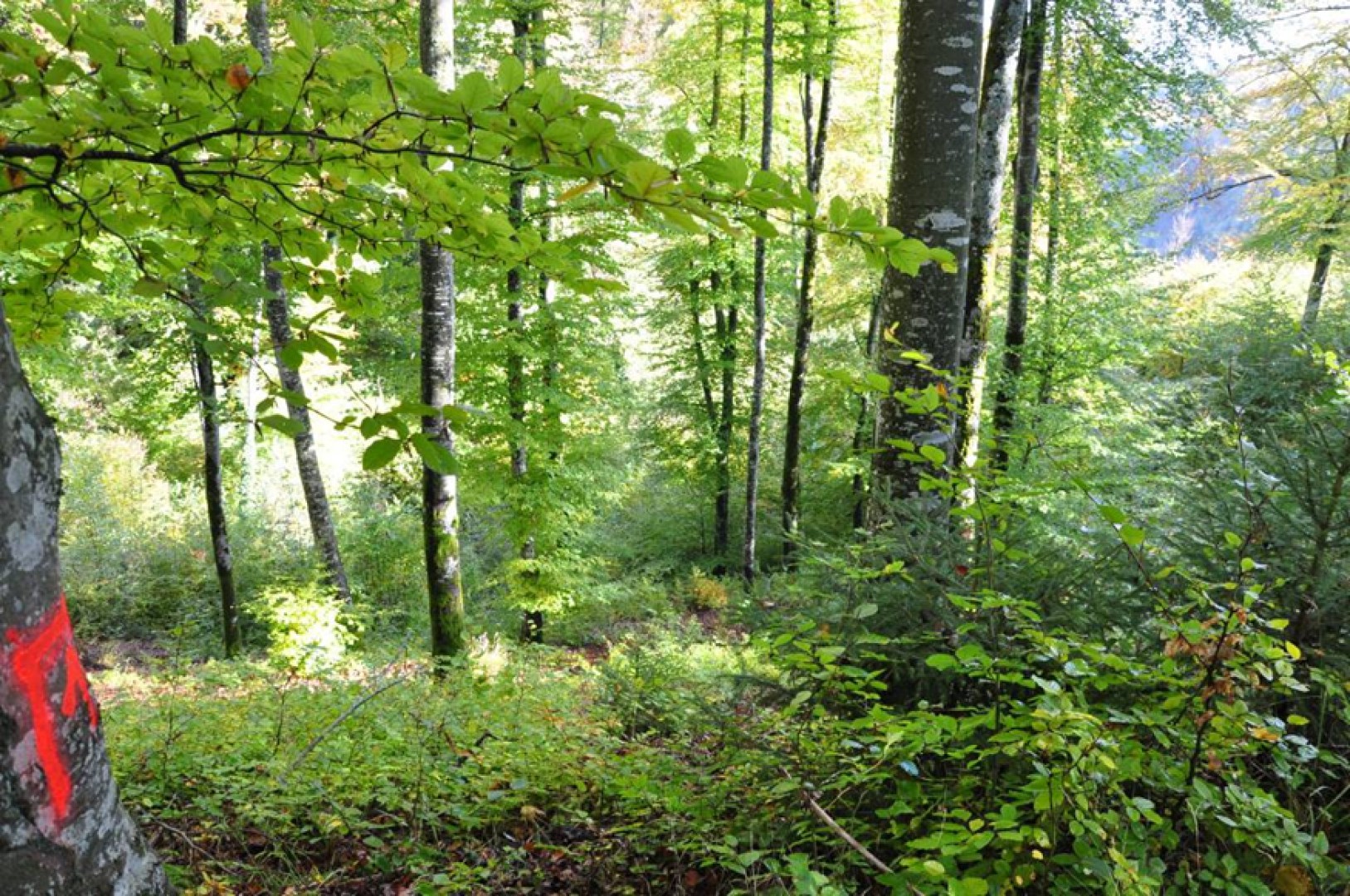Le hêtre est actuellement trop dominant dans le mélange, y compris dans le rajeunissement. Le peuplement ne sera donc pas suffisamment résilient dans des conditions climatiques plus sèche. Par ailleurs, l'aspect du fourré ne permet pas une bonne stabilité à l'avenir (longues tiges filasses). Il est donc nécessaire d'intervenir pour favoriser la stabilité du rajeunissement, et garantir une protection efficace contre les glissements de terrain à l'avenir.