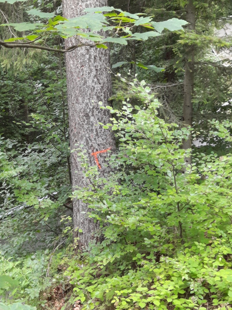2015 : Suite des dégâts par le bostryche. Bois abattu en travers, écorcé en partie et laissé sur place.