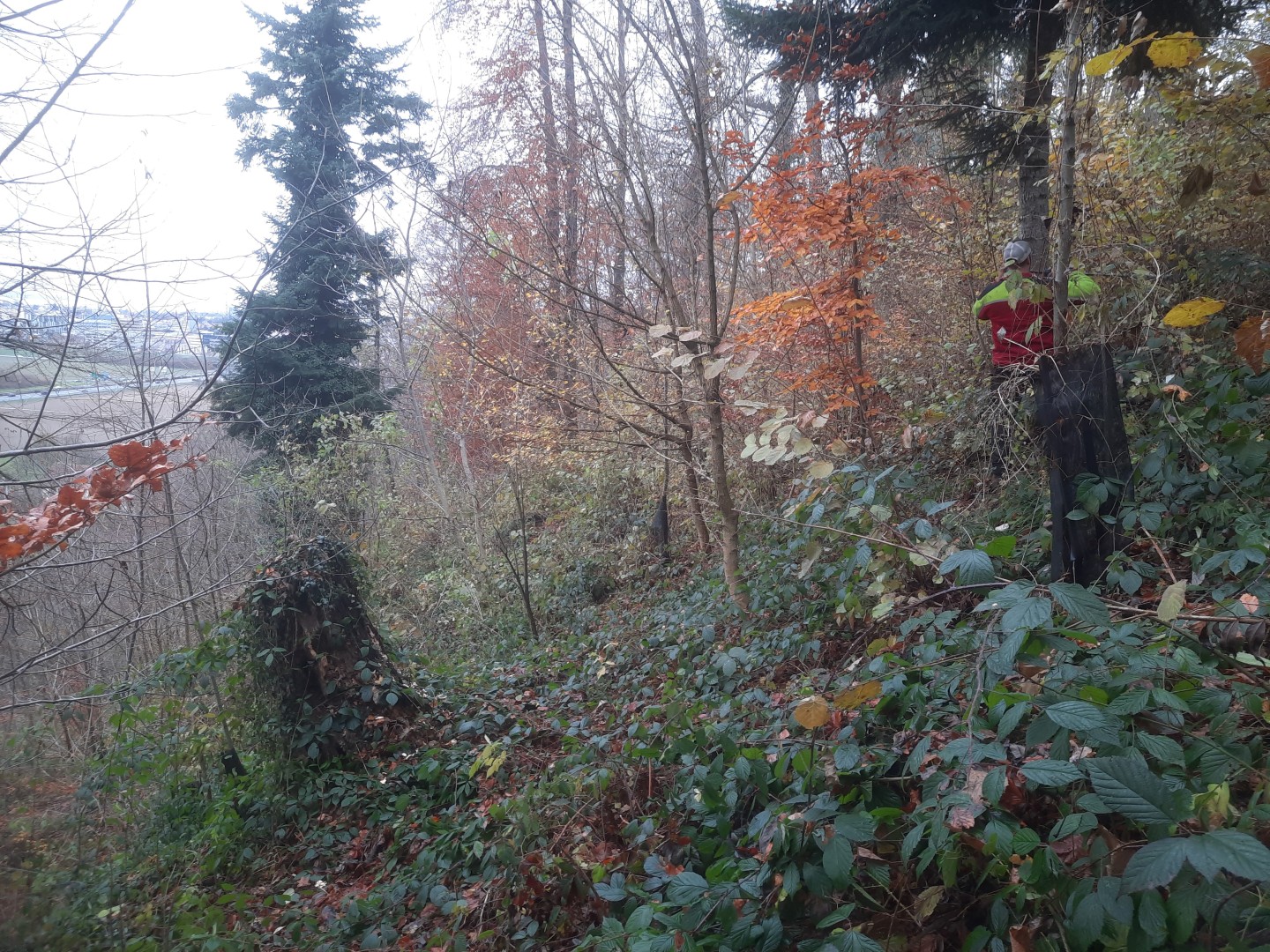 Le recrû de hêtre n'est pas encore installé, la ronce et la clématite font concurrence