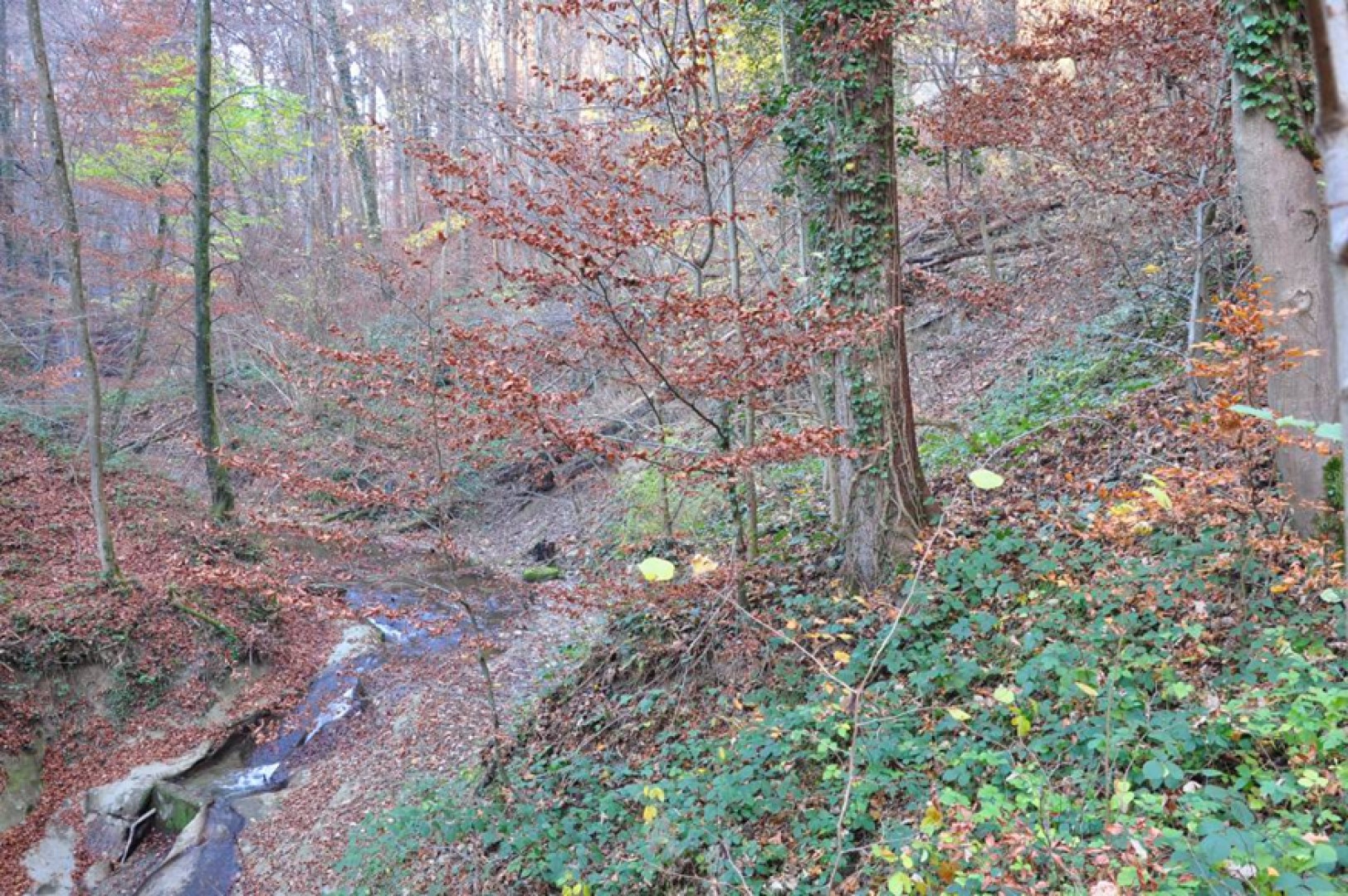 Présence de ronce dans les zones où la lumière atteint le sol, mais tolérable pour le lit de germination