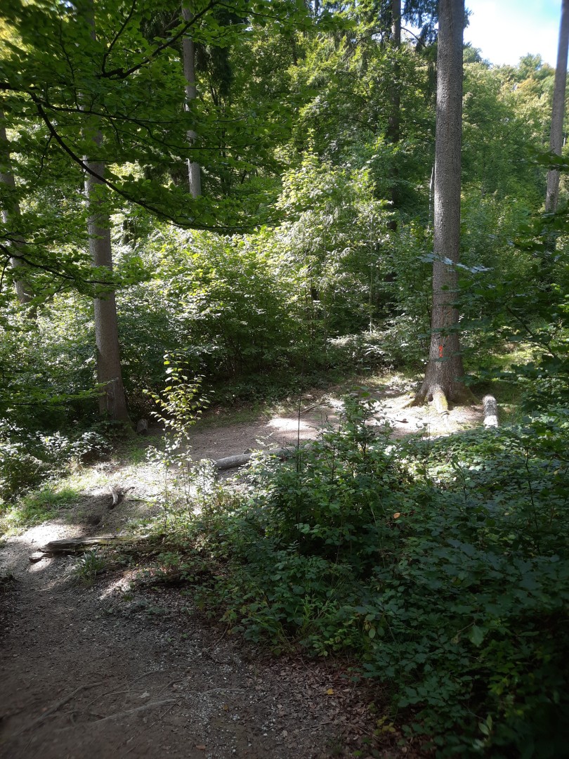 Dans la partie est de la placette, le peuplement est trop fermé, ce qui risque de limiter le renouvellement. Dans l'autre partie, le rajeunissement est bien présent, mais la concurrence de la ronce et la dominance du hêtre risque d'augmenter. On imagine également que certains frênes dépérissant peuvent tomber, créant naturellement de la lumière dans le peuplement.