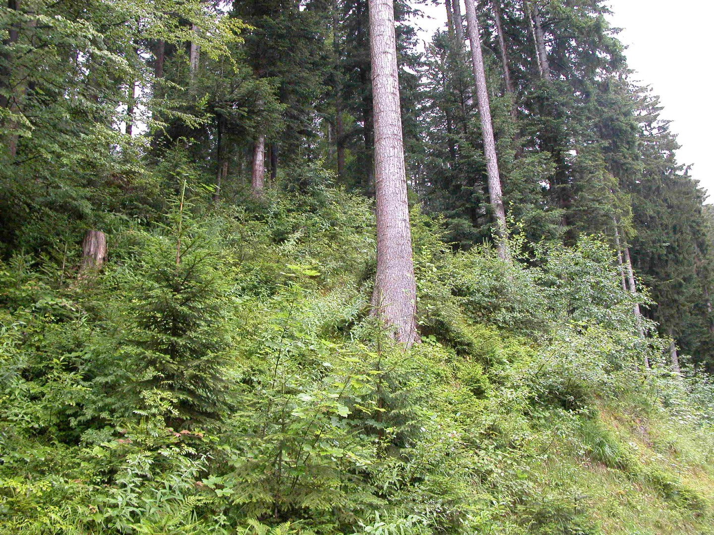 In der Weiserfläche wurde noch keine Plenterdurchforstung durchgeführt. Ein Eingriff ist auch weiterhin nicht dringend. In zirka 5 Jahren kann die Situation wieder neu beurteilt werden.