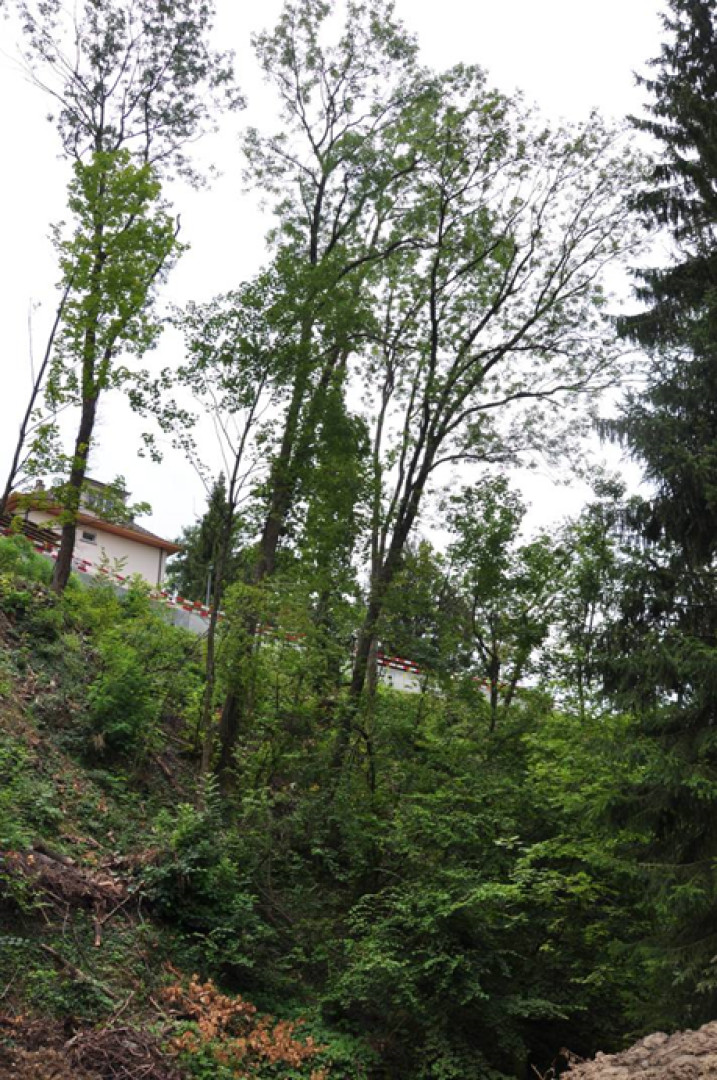 On observe une grande variété de feuillus (hêtre, robinier, aulne glutineux, orme des montagne, noisetier, érable sycomore, ér. plane, ér. champêtre).