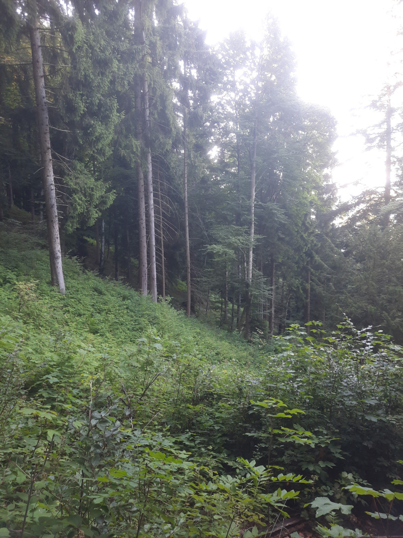 Toutes les essences à cibler pour l'avenir sont présentes, ce qui est bon signe pour la capacité d'adaptation du peuplement au changement climatique. Néanmoins, il y a actuellement une trop forte part de résineux dans la surface. De manière générale, on peut conclure que l'intervention a eu un effet très positif par rapport au changement climatique, mais en regard du danger de chutes de pierre, il devrait y avoir davantage de bois mort laissé au sol et de souches hautes pour que l'effet de protection soit optimal.