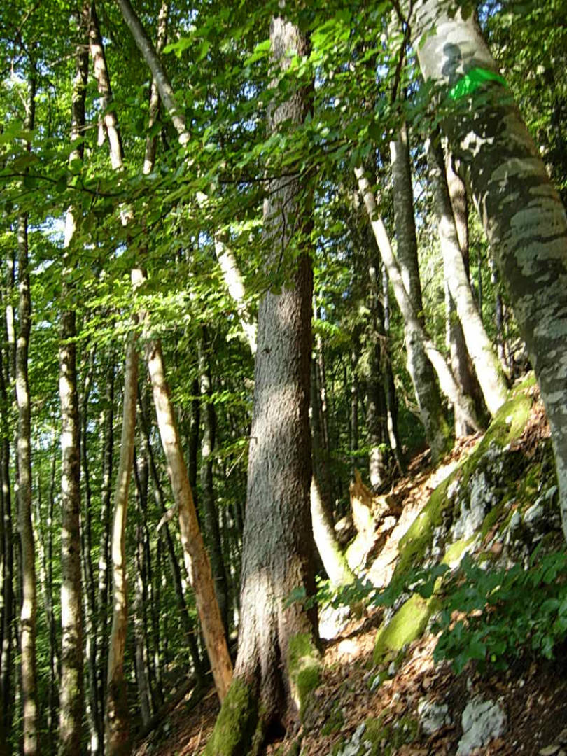 Diminuer le % d'EP en faveur des - feuillus divers. Maintenir quelques sapins avec une bonne vitalité.