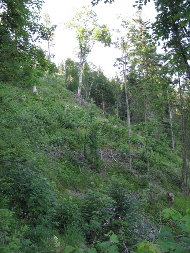 Recrû initial tous les 5m, composé principalement de sorbier, épicéa, sapin et érable en suffisance, ainsi que quelques hêtres