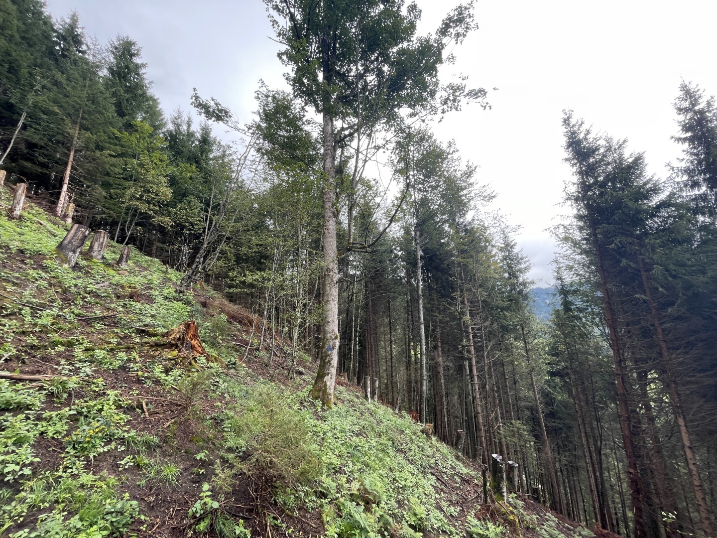 Der Bergahorn-Anwuchs ist in vielen Lücken zahlreich vorhanden.