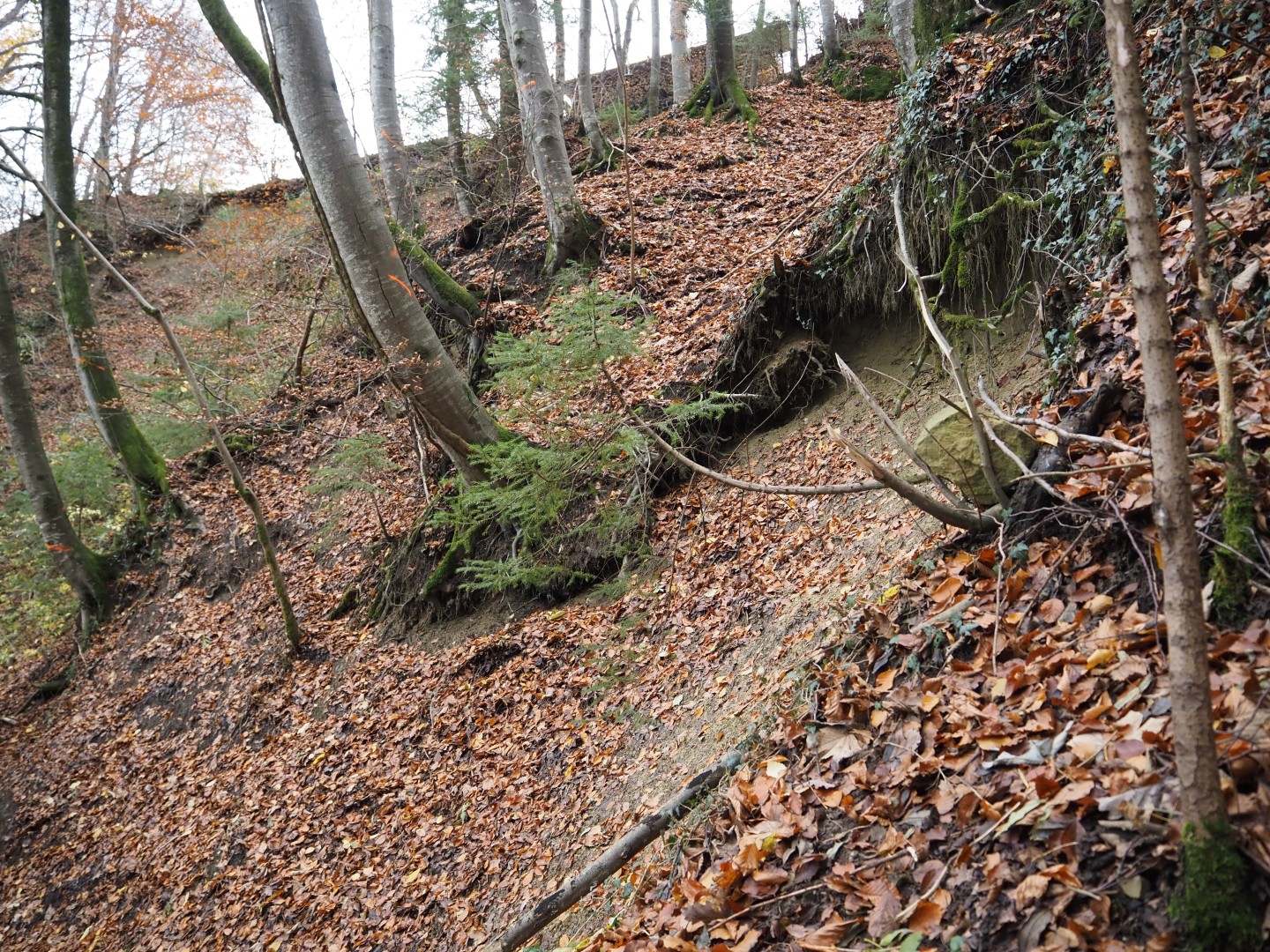 Erosionsentwicklung: Breiten sich die bestehenden Rutschungen und Anrisskanten aus? Kommen neue Rutschungen dazu? Werden die Rutschflächen wieder von Bäumen bewachsen?