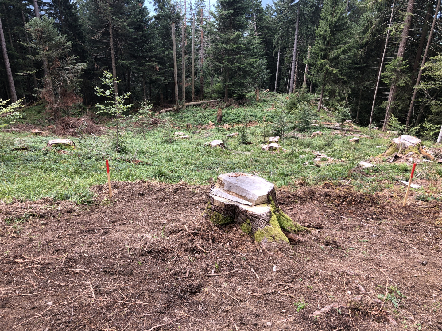 Waldschutzmassnahmen infolge Käfer, Verjüngungseinleitung, Verjüngung von Lichtbaumarten im Schutzwald, Baumartenvielfalt