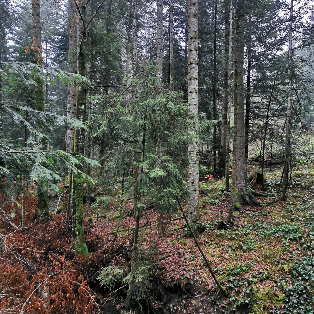 Il s'agit d'un peuplement issu de rajeunissement naturel. Une éclaircie positive a été effectuée en 1985. Volume sur pied: 274 sv/ha (cf. inventaire).