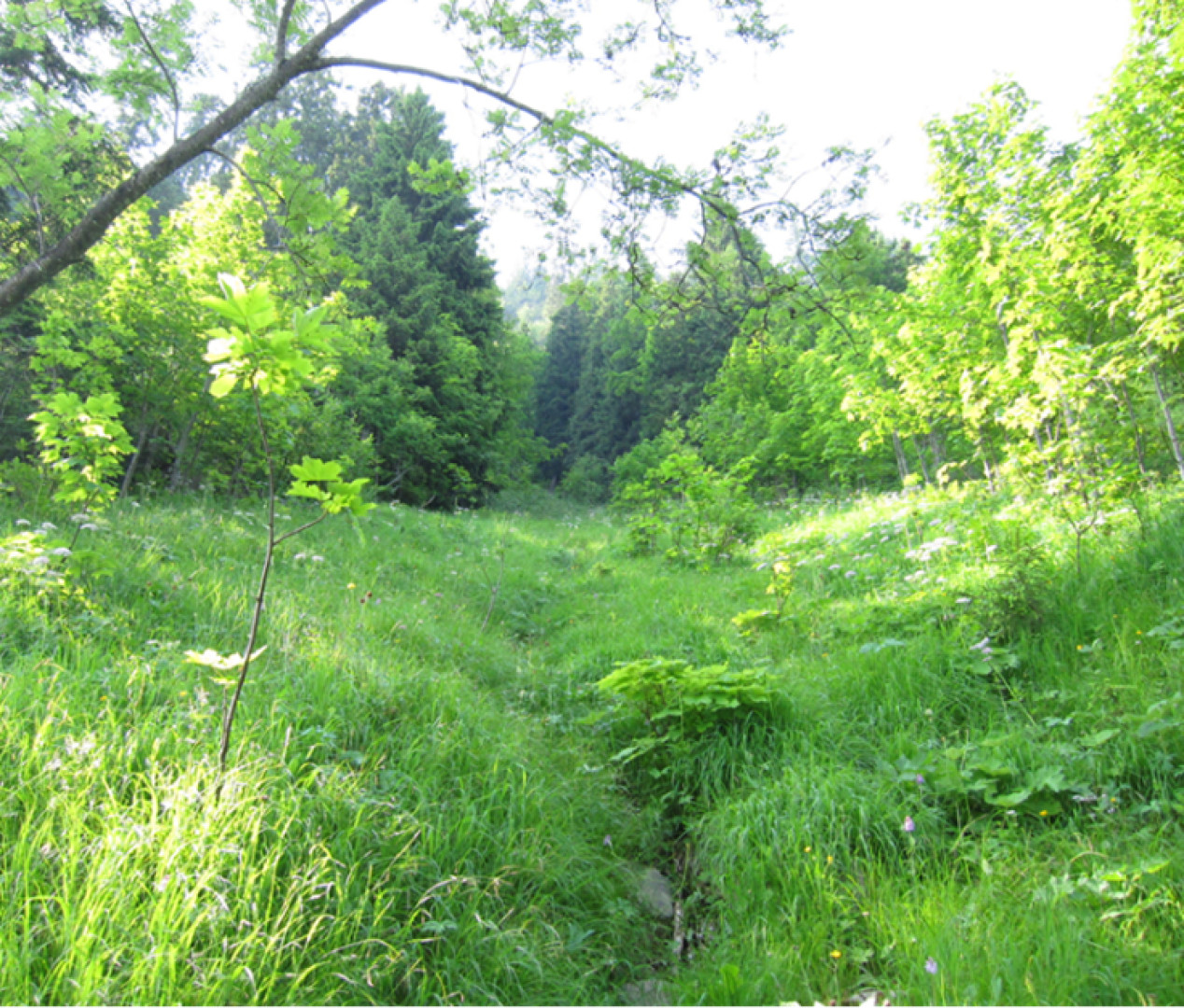 Der Bergahorn wächst gut in der Nähe des Schleifes, zum Teil verbissen (siehe Foto No 7 Vergleich 2010 zu 2016) Die Verjüngung wächst nicht durchgehend auf Moderholz.