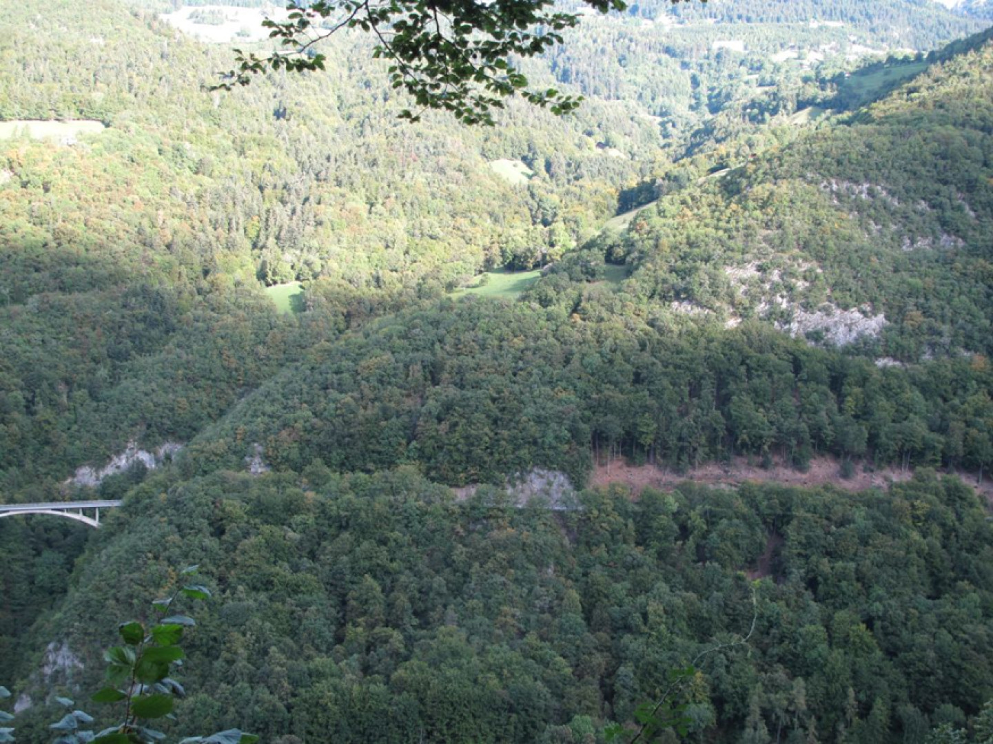 Forêt pentue sur sol rocheux au-dessus de la route cantonale