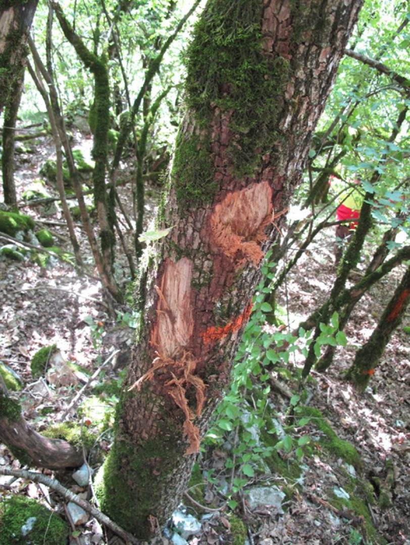 Suite à la coupe (traitement de taillis), le nombre de tige a fortement diminué et n'est pas suffisant pour protéger contre les chutes de pierres. La pose de filets de protection est nécessaire.