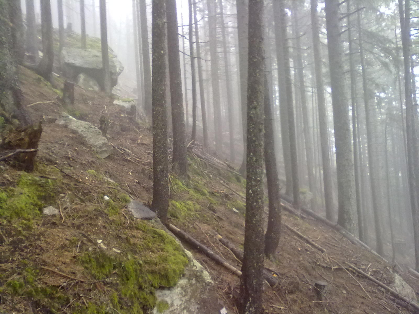 Eingriff 2006; Schlitze gegen Morgensonne zur Verjüngungsförderung; ca. 20 m3 = ca. 25% (Ernte mit Heli); Anfangs viele Ta-Keimlinge, die aber zu allermeist eingingen. Da kein Anwuchs vorhanden war, war auch kaum Aufwuchs zu erwarten.