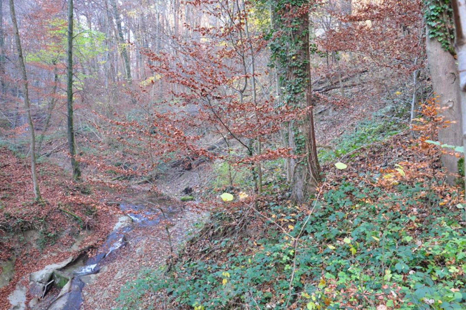 Forêts protectrices situées au cœur de la Ville de Lausanne avec pour enjeux les habitations situées en aval et le risque d'inondation qui pourrait être provoqué par l'obstruction du lit de la rivière.
