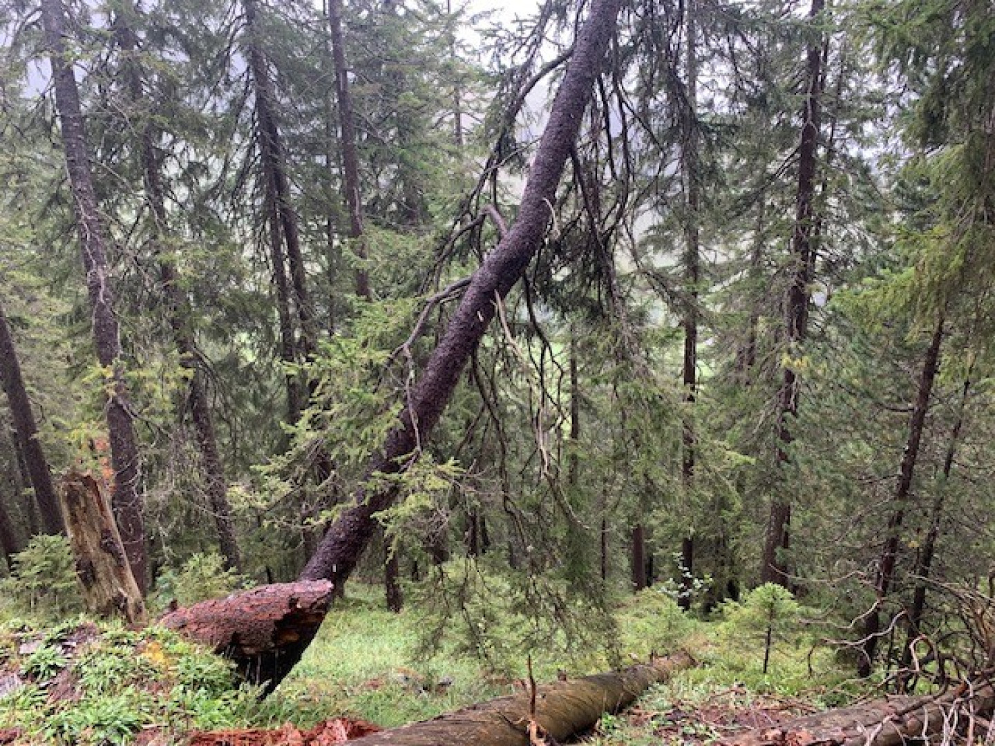 Totholz: Zunahme Totholz durch abgehende Fichten wird sicher weitergehen und das liegende Totholz wird weiterhin eine wichtige Funktion für die Verjüngung und den Steinschlagschutz übernehmen.